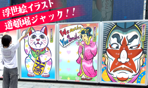 こんにちIWAっす! 今回はIWAの浮世絵イラストを大阪の道頓堀に出現させて頂きました(^^) ちょっと何言ってるか分からないと思いますので早速概要を説明します。 今回、東京スター銀行様のご依頼でなんと道頓堀横のフォトパ…
